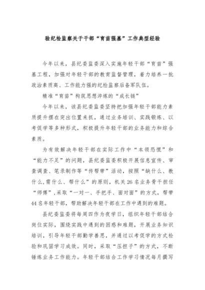 【七哥公文】2025年:验纪检监察关于干部“育苗强基”工作典型经验+更多免费公文+VX:QiGeGongWen2024