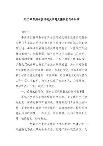 / 【七哥公文】2025年:2025年落实省委巡视反馈意见整改动员会讲话+更多免费公文+VX:QiGeGongWen2024