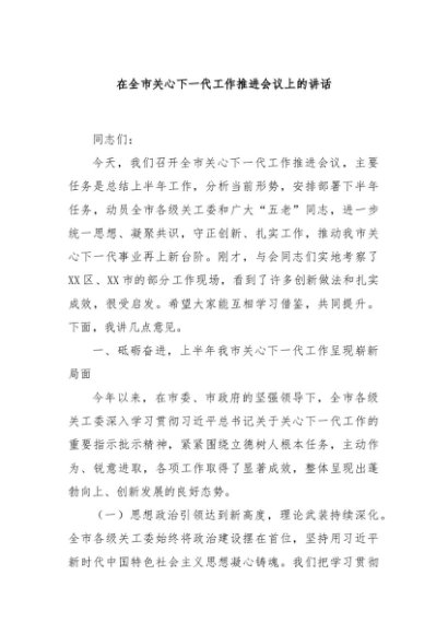 / 【七哥公文】2025年:在全市关心下一代工作推进会议上的讲话+更多免费公文+VX:QiGeGongWen2024