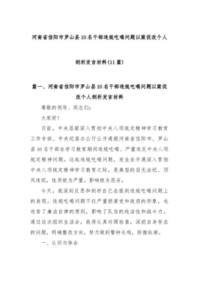 【七哥公文】2025年:(11篇)河南省信阳市罗山县10名干部违规吃喝问题以案促改个人剖析发言材料+更多免费公文+VX:QiGeGongWen2024