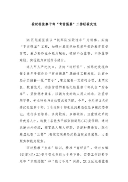 / 【七哥公文】2025年:验纪检监察干部“育苗强基”工作经验交流+更多免费公文+VX:QiGeGongWen2024