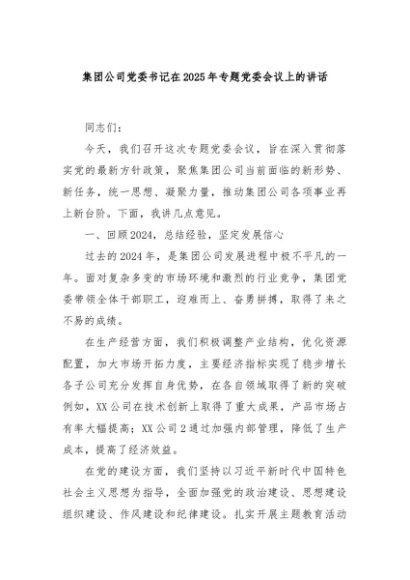 / 【七哥公文】2025年:集团公司党委书记在2025年专题党委会议上的讲话+更多免费公文+VX:QiGeGongWen2024