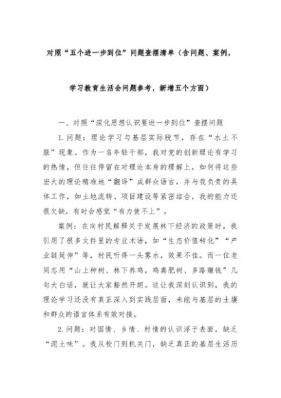 【七哥公文】2025年:对照“五个进一步到位”问题查摆清单(含问题、案例,学习教育生活会问题参考,新增五个方面)+更多免费公文+VX:QiGeGongWen2024