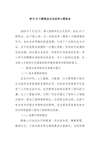 / 【七哥公文】2025年:学习17个新职业正式发布心得体会+更多免费公文+VX:QiGeGongWen2024