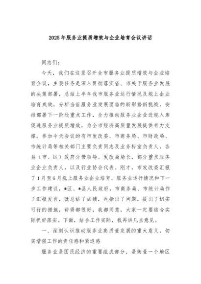/ 【七哥公文】2025年:2025年服务业提质增效与企业培育会议讲话+更多免费公文+VX:QiGeGongWen2024