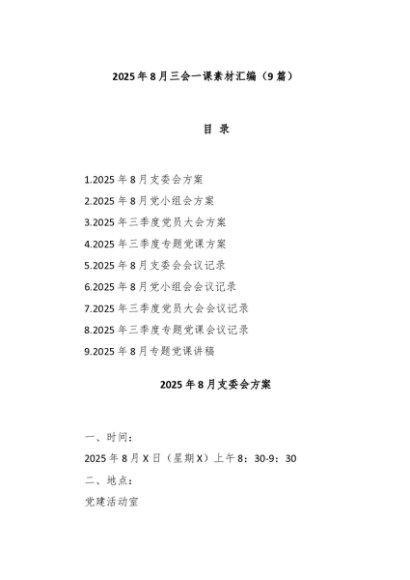 / 【七哥公文】2025年:(9篇)2025年8月三会一课素材汇编+更多免费公文+VX:QiGeGongWen2024