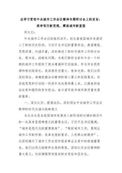 【七哥公文】2025年:在学习贯彻中央城市工作会议精神专题研讨会上的发言:深学笃行新思想,擘画城市新蓝图+更多免费公文+VX:QiGeGongWen2024