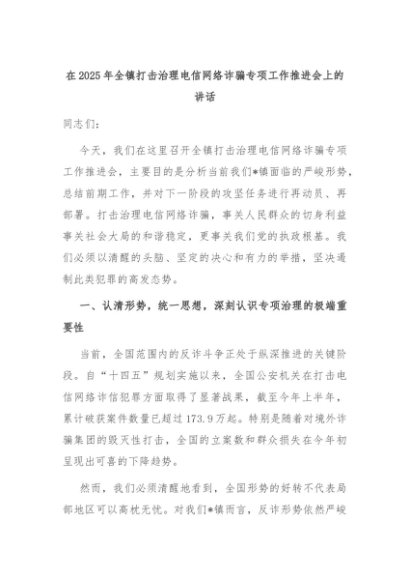 【七哥公文】2025年:在2025年全镇打击治理电信网络诈骗专项工作推进会上的讲话+更多免费公文+VX:QiGeGongWen2024