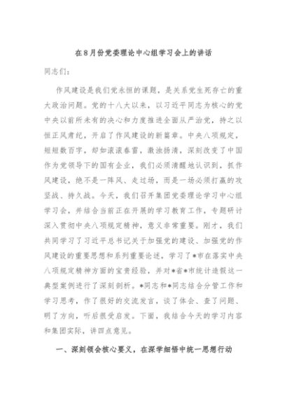 / 【七哥公文】2025年:在8月份党委理论中心组学习会上的讲话+更多免费公文+VX:QiGeGongWen2024