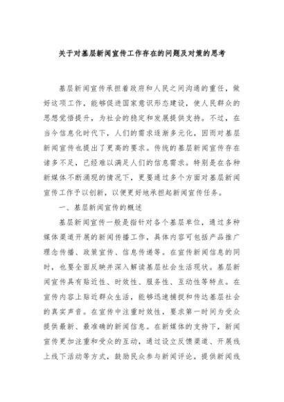 / 【七哥公文】2025年:关于对基层新闻宣传工作存在的问题及对策的思考+更多免费公文+VX:QiGeGongWen2024