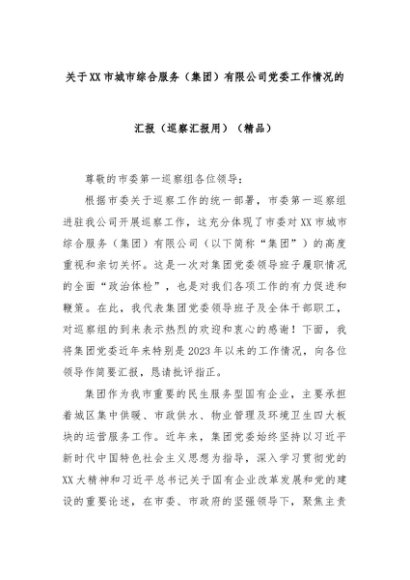 【七哥公文】2025年:关于XX市城市综合服务(集团)有限公司党委工作情况的汇报(巡察汇报用)(精品)+更多免费公文+VX:QiGeGongWen2024