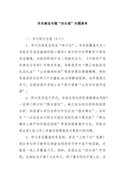 / 【七哥公文】2025年:作风建设专题“回头看”问题清单+更多免费公文+VX:QiGeGongWen2024