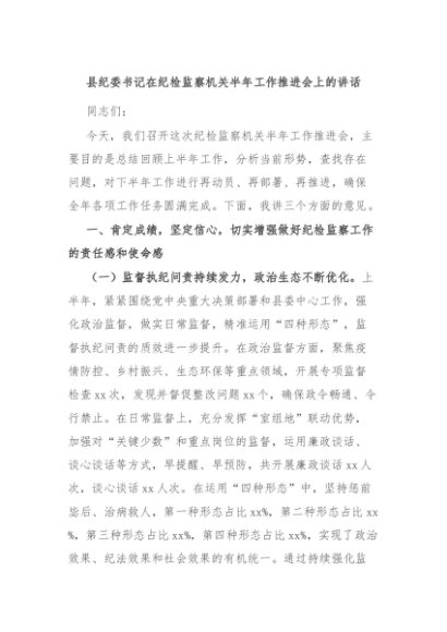 / 【七哥公文】2025年:县纪委书记在纪检监察机关半年工作推进会上的讲话+更多免费公文+VX:QiGeGongWen2024