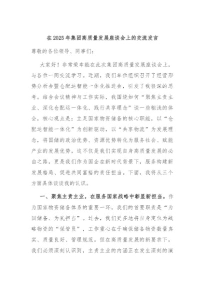 / 【七哥公文】2025年:在2025年集团高质量发展座谈会上的交流发言+更多免费公文+VX:QiGeGongWen2024
