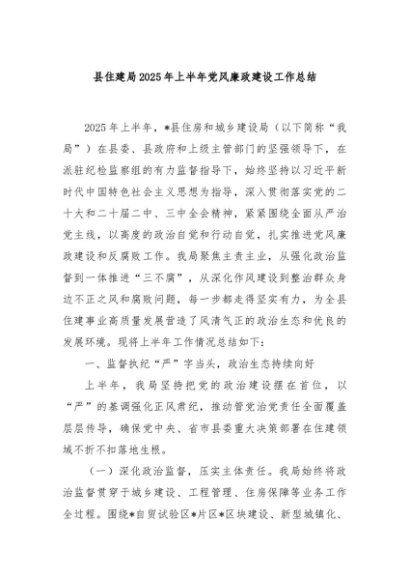 / 【七哥公文】2025年:县住建局2025年上半年党风廉政建设工作总结+更多免费公文+VX:QiGeGongWen2024