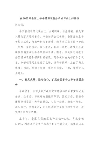 / 【七哥公文】2025年:在2025年全区上半年经济运行分析点评会上的讲话+更多免费公文+VX:QiGeGongWen2024