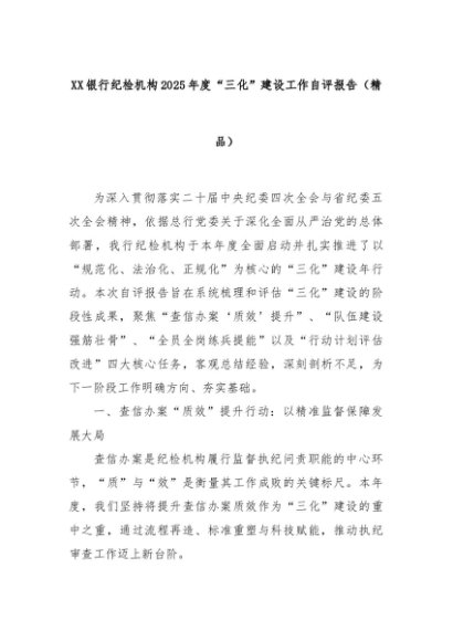 【七哥公文】2025年:XX银行纪检机构2025年度“三化”建设工作自评报告(精品)+更多免费公文+VX:QiGeGongWen2024