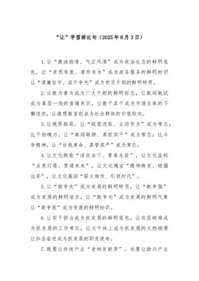 / 【七哥公文】2025年:“让”字型排比句(2025年8月3日)+更多免费公文+VX:QiGeGongWen2024