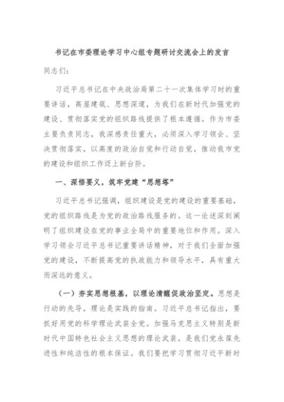 / 【七哥公文】2025年:书记在市委理论学习中心组专题研讨交流会上的发言+更多免费公文+VX:QiGeGongWen2024