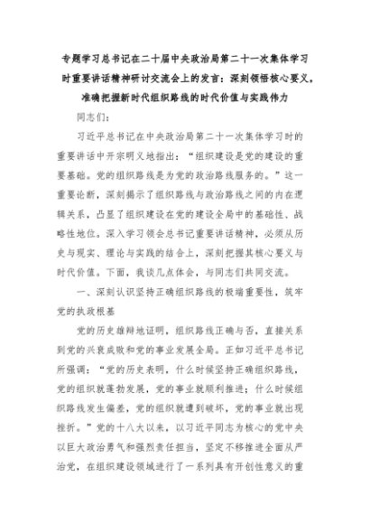 【七哥公文】2025年:专题学习总书记在二十届中央政治局第二十一次集体学习时重要讲话精神研讨交流会上的发言:深刻领悟核心要义,准确把握新时代组织路线的时代价值与实践伟力+更多免费公文+VX:QiGeGongWen2024