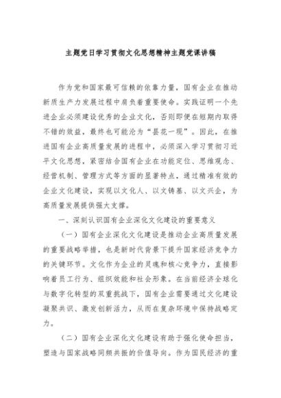 / 【七哥公文】2025年:主题党日学习贯彻文化思想精神主题党课讲稿+更多免费公文+VX:QiGeGongWen2024