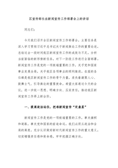 / 【七哥公文】2025年:区宣传部长在新闻宣传工作部署会上的讲话+更多免费公文+VX:QiGeGongWen2024