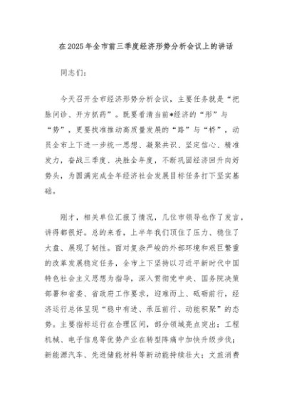 / 【七哥公文】2025年:在2025年全市前三季度经济形势分析会议上的讲话+更多免费公文+VX:QiGeGongWen2024