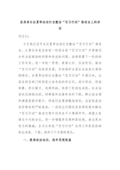 【七哥公文】2025年:县局局长在夏季治安打击整治“百日行动”推进会上的讲话+更多免费公文+VX:QiGeGongWen2024