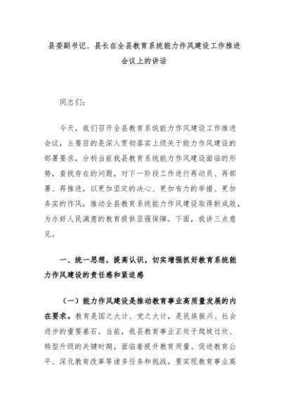 【七哥公文】2025年:县委副书记、县长在全县教育系统能力作风建设工作推进会议上的讲话+更多免费公文+VX:QiGeGongWen2024