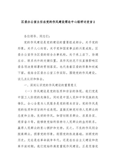 / 【七哥公文】2025年:区委办公室主任在党的作风建设理论中心组研讨发言2+更多免费公文+VX:QiGeGongWen2024