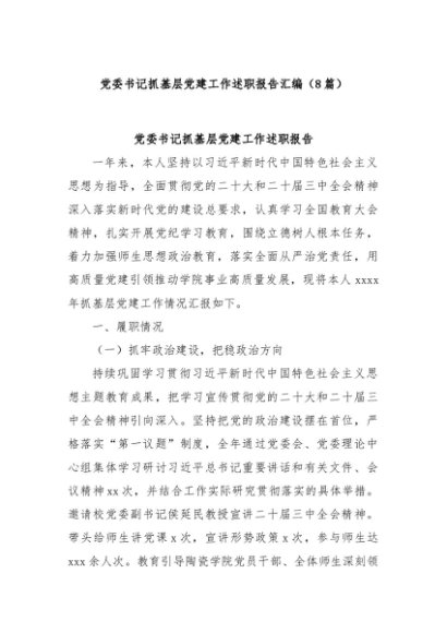 / 【七哥公文】2025年:(8篇)党委书记抓基层党建工作述职报告汇编+更多免费公文+VX:QiGeGongWen2024