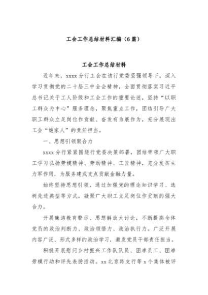 / 【七哥公文】2025年:(6篇)工会工作总结材料汇编+更多免费公文+VX:QiGeGongWen2024