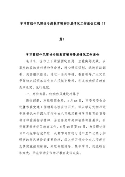 【七哥公文】2025年:(7篇)学习贯彻作风建设专题教育精神开展情况工作报告汇编+更多免费公文+VX:QiGeGongWen2024