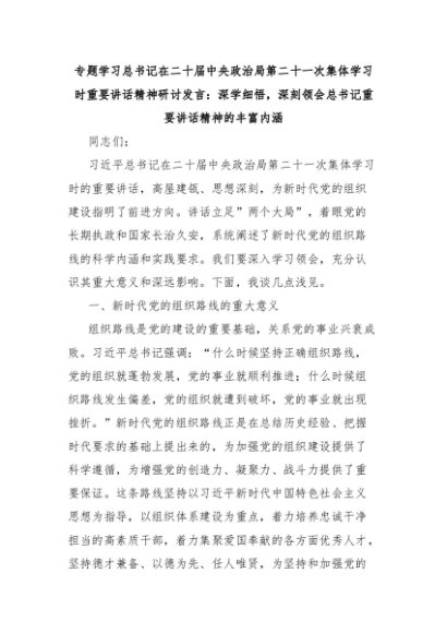 【七哥公文】2025年:专题学习总书记在二十届中央政治局第二十一次集体学习时重要讲话精神研讨发言:深学细悟,深刻领会总书记重要讲话精神的丰富内涵+更多免费公文+VX:QiGeGongWen2024