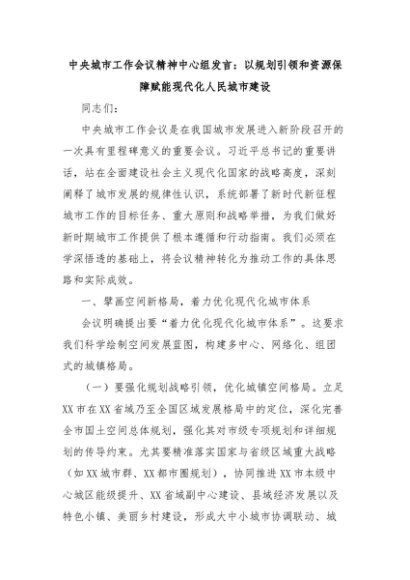 【七哥公文】2025年:中央城市工作会议精神中心组发言:以规划引领和资源保障赋能现代化人民城市建设+更多免费公文+VX:QiGeGongWen2024