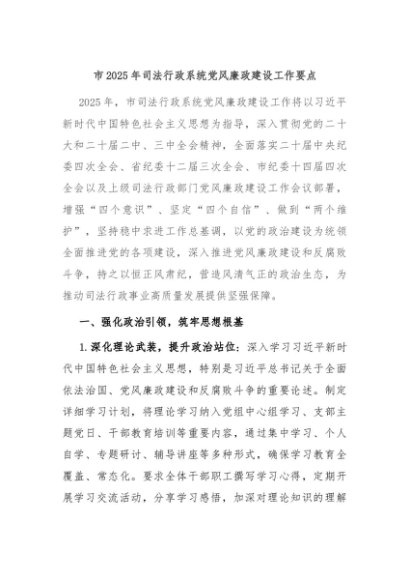 / 【七哥公文】2025年:市2025年司法行政系统党风廉政建设工作要点+更多免费公文+VX:QiGeGongWen2024