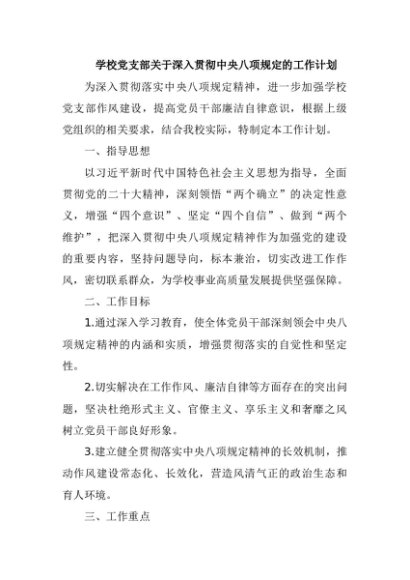 / 【七哥公文】2025年:学校党支部关于深入贯彻中央八项规定的工作计划+更多免费公文+VX:QiGeGongWen2024