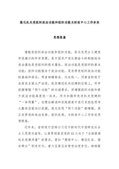 【七哥公文】2025年:强化机关党组织政治功能和组织功能为财政中心工作夯实思想根基+更多免费公文+VX:QiGeGongWen2024