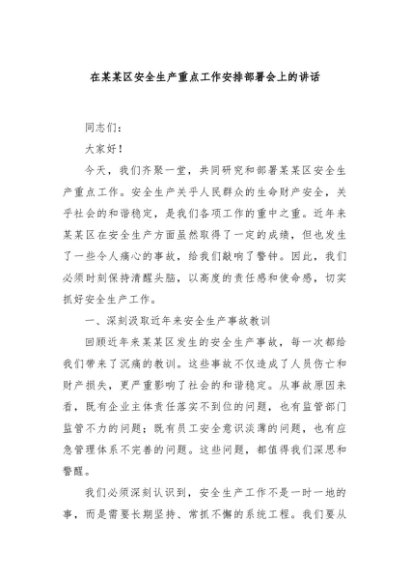 / 【七哥公文】2025年:在某某区安全生产重点工作安排部署会上的讲话+更多免费公文+VX:QiGeGongWen2024