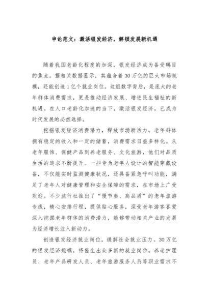 【七哥公文】2025年:申论范文:激活银发经济,解锁发展新机遇+更多免费公文+VX:QiGeGongWen2024