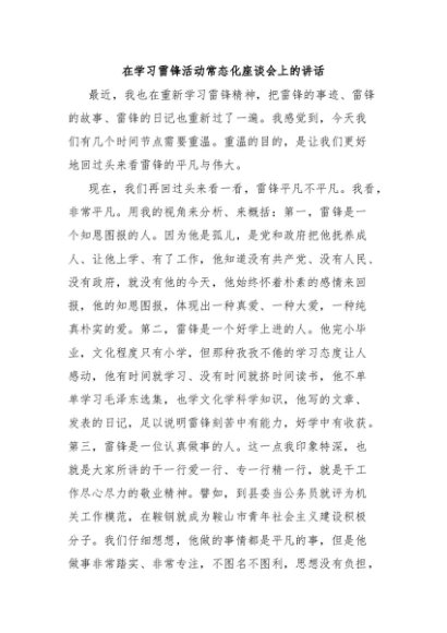 / 【七哥公文】2025年:在学习雷锋活动常态化座谈会上的讲话+更多免费公文+VX:QiGeGongWen2024
