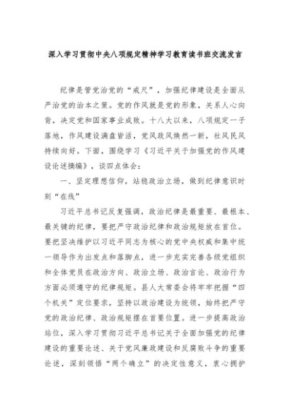 【七哥公文】2025年:深入学习贯彻中央八项规定精神学习教育读书班交流发言+更多免费公文+VX:QiGeGongWen2024