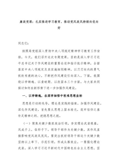 【七哥公文】2025年:廉政党课:扎实推进学习教育,推动党风政风持续向优向好+更多免费公文+VX:QiGeGongWen2024