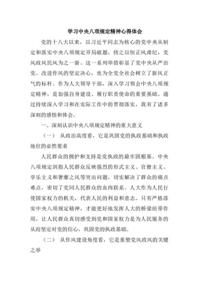 【七哥公文】2025年:学习中央八项规定精神心得体会+更多免费公文+VX:QiGeGongWen2024