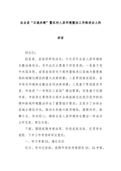 【七哥公文】2025年:在全县“五城共建”暨农村人居环境整治工作推进会上的讲话+更多免费公文+VX:QiGeGongWen2024