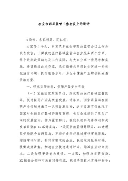 / 【七哥公文】2025年:在全市药品监管工作会议上的讲话+更多免费公文+VX:QiGeGongWen2024