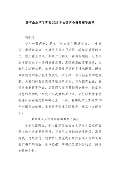 / 【七哥公文】2025年:国有企业学习贯彻2025年全国两会精神辅导授课+更多免费公文+VX:QiGeGongWen2024