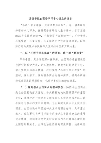/ 【七哥公文】2025年:县委书记在理论学习中心组上的发言+更多免费公文+VX:QiGeGongWen2024
