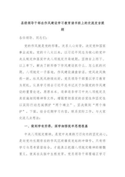 【七哥公文】2025年:县级领导干部在作风建设学习教育读书班上的交流发言提纲+更多免费公文+VX:QiGeGongWen2024