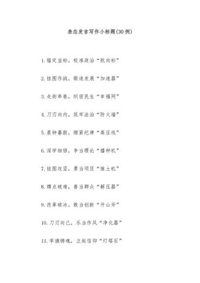 / 【七哥公文】2025年:(30例)表态发言写作小标题+更多免费公文+VX:QiGeGongWen2024